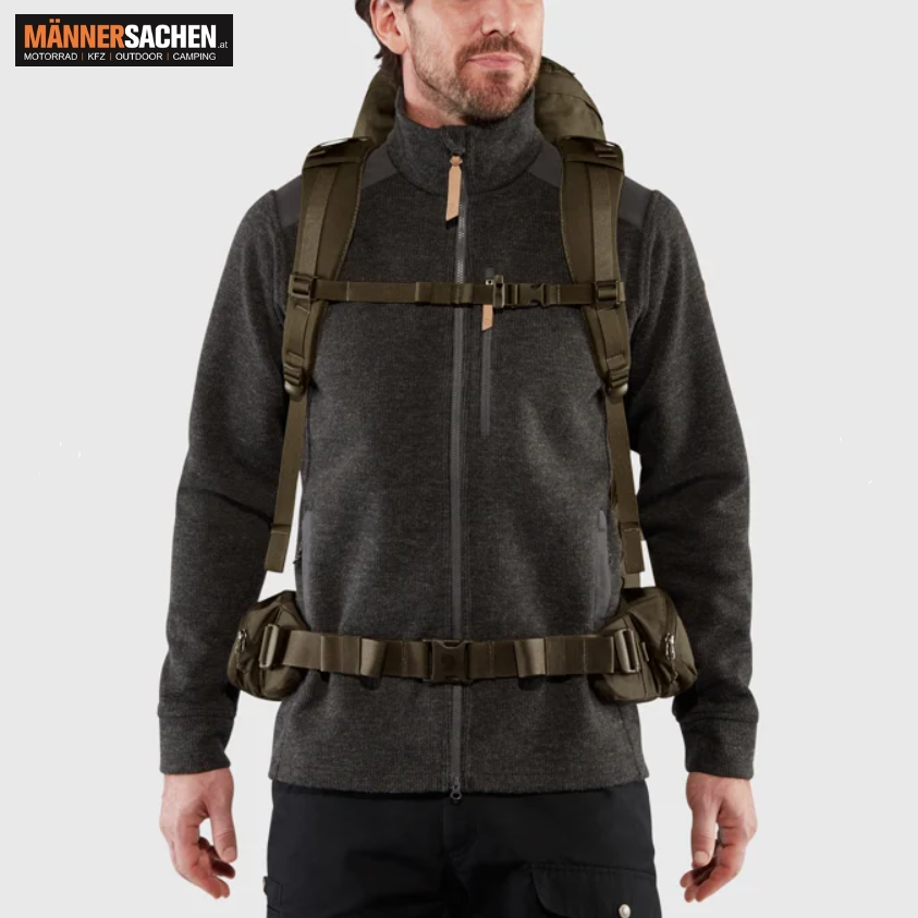 FJÄLLRÄVEN Rucksack Jagdrucksack Freizeitrucksack in traumhafter Qualität. Modell : VÄRMLAND Material : G-1000 und Loden Geräuscharmer, strapazierfähiger Jagdrucksack mit vielseitigen Einsatzmöglichkeiten im Wald. PFC-frei produziert und für maximale Langlebigkeit designt. PRODUKTBESCHREIBUNG :  Vielseitiger Rucksack für die Jagd und Ausflüge in den Wald. Gefertigt aus strapazierfähigem G-1000 HeavyDuty Eco mit geräuscharmer und robuster recycelter Wolle an den Seiten und Taschen. Großes Hauptfach mit integrierten Flaschenhaltern und Innentasche zum Verstauen eines Sitzkissens. Fronttaschen mit geräuscharmen Riemen- und Schlaufenverschlüssen. Schlaufen an den Seiten zur Befestigung der Värmland Wool Side Pockets oder der Singi Side Pockets. Der gepolsterte Boden bietet zusätzlichen Schutz für den Inhalt und macht beim Abstellen auf den Boden kaum Geräusche. Brustgurt und verstellbare, gepolsterte Schultergurte. TECHNISCHE DETAILS : Höhe: 48 cm Breite: 54 cm Tiefe: 27 cm Verstellbare Rückenlänge: Nein Volumen: 35 Liter Gewicht: 1250 g Anzahl der Taschen: 6 Taschen: Innenfach, Außenfach, Innentasche(n) mit Reißverschluss Tragesystem: Aluminiumrahmen Brustgurt: Ja Abnehmbarer Brustgurt: Ja Rucksackdeckel: Fixierter Rucksackdeckel Öffnung oben: Nein Frontöffnung: Ja Bodenfach: Nein Schneefang: Ja Kompatibel mit Trinksystem: Nein Für weitere Fragen stehen wir sehr gerne zur Verfügung ! 0676 9119990