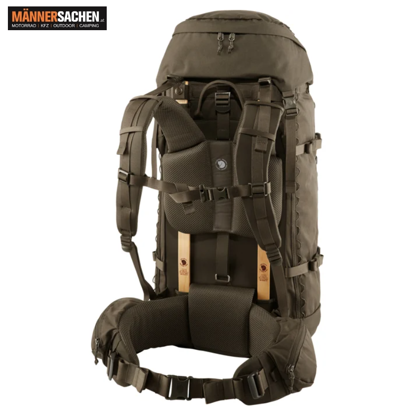 Er punktet mit preisgekröntem Holzrahmen von Fjällräven und sein Tragesystem lässt sich mühelos an verschiedene Rückenlängen anpassen.