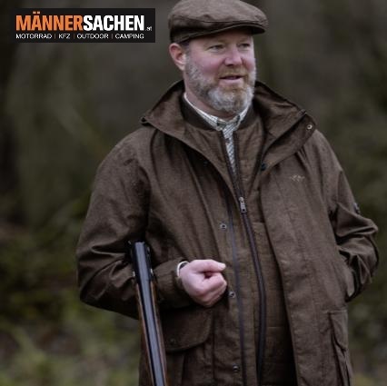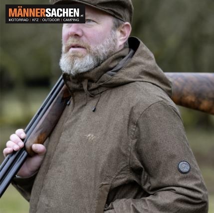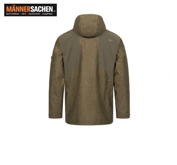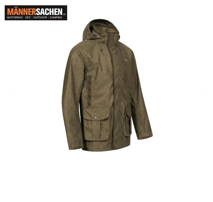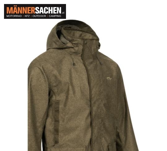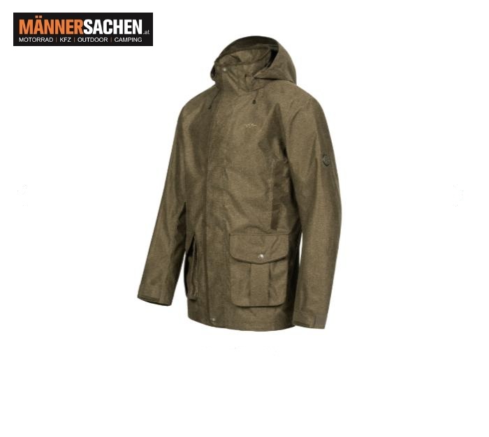 Wasser- und winddichte 2-Lagen-Jacke aus Blaser Vintage-Gewebe, Stretch-Einsätze im Schulterblattbereich für mehr Bewegungsfreiheit, Handwärmertaschen auf Brusthöhe mit gebürstetem Futter, 1 Napoleon-Tasche hinter der Windleiste, 2 Pattentaschen unten mit Druckknopf und Taftfutter für zusätzliche Strapazierfähigkeit, abnehmbare Kapuze mit 2-Punkt-Verstellung, Suede-Details an Kragen und Taschenklappen, Saum- und Ärmelbundverstellung für guten Sitz, Innenfutter im oberen Rückenbereich aus gebürstetem Stretch-Mesh, Taftfutter im restlichen Teil der Jacke, Akanthus-Nacken-Label und -Ärmel-Emblem.