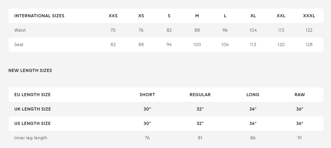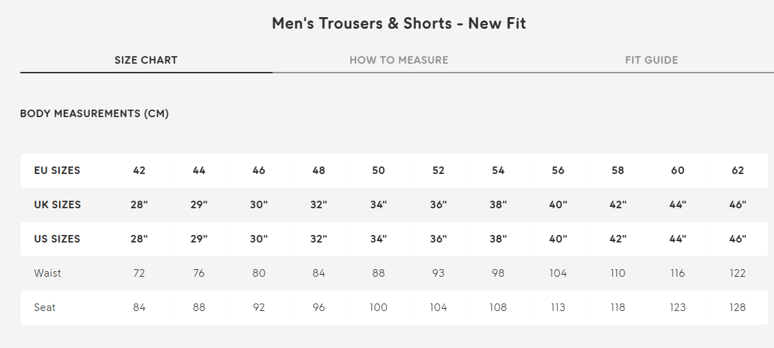 Wenn du bereits ein Fan unserer Hosen bist, wählst du Hosen mit unserem Improved Fit eine Nummer größer.