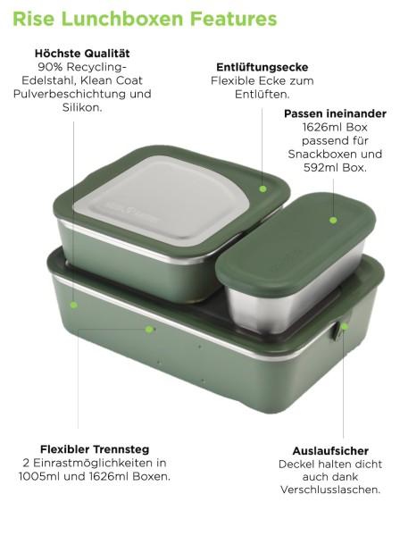 Produktinformationen "Klean Kanteen Edelstahl Essensbehälter Lunchbox Rise 1626ml auslaufsicher mit Trennsteg"