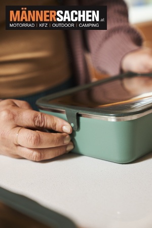 Klean Kanteen Edelstahl Essensbehälter  MODELL : Lunchbox Rise  INHALT : 1626 ml Farbe: Tofu, Sea Spray, Autumn Glaze  90% Recycling-Edelstahl Auslaufsicher Spülmaschinengeeignet Absplitterfest Klimaneutral   Vorteile unserer Edelstahl Essensbehälter * Hergestellt aus 90% zertifiziertem recyceltem 18/8 Edelstahl: Das spart CO2 * Trennsteg kann flexibel an zwei Stellen eingesteckt werden * Backofentauglich für 20 Minuten bei 177°C (Deckel vor dem Erhitzen abnehmen) * Flexible Ecklasche zur einfachen Entlüftung * Rostfrei und unzerbrechlich * Mikrowellen geeignet bis 1000W (Deckel vor dem Erhitzen abnehmen) * Für Gefrierschrank geeignet * Klean Coat Pulverbeschichtung: Farbbeschichtung ist absplitterfest   Eigenschaften Gewicht (mit Deckel): 435 g Isolierung: Unisoliert; nicht für heiße Inhalte geeignet Material: 18/8 Edelstahl (davon 90% zertifizierter recycelter Edelstahl), BPA-freies Polypropylen, Silikon Spülmaschinengeeignet: Ja Abmessungen: 234 mm x 163 mm x 65 mm Füllmenge: 1626 ml (55 oz) Für Backofen geeignet: Ja, Ohne Deckel Für Gefrierschrank geeignet: Ja Für Mikrowelle geeignet: Ja, Ohne Deckel   Bei weiteren Fragen stehen wir Ihnen gerne telefonisch oder per Mail zur Verfügung. 0676 - 9119990  office@maennersachen.at