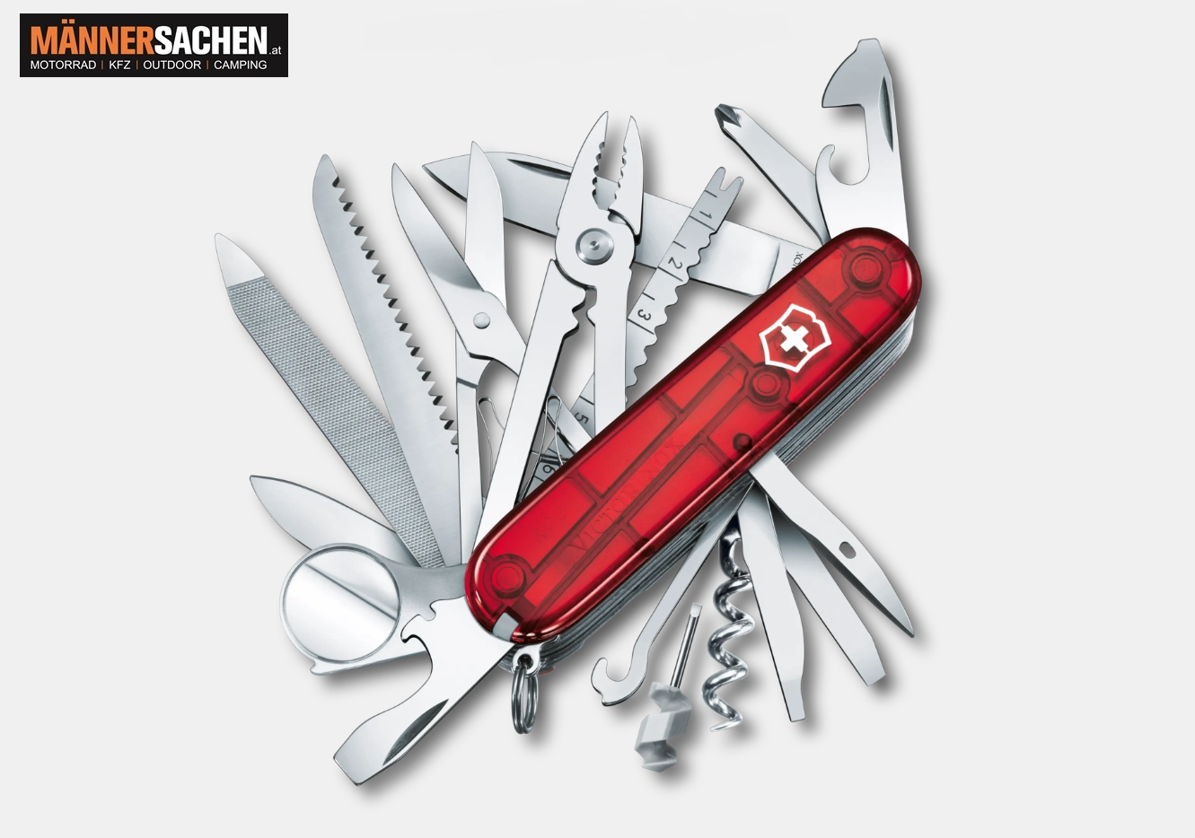 • Taschenmesser mit 33 Funktionen, hergestellt in der Schweiz