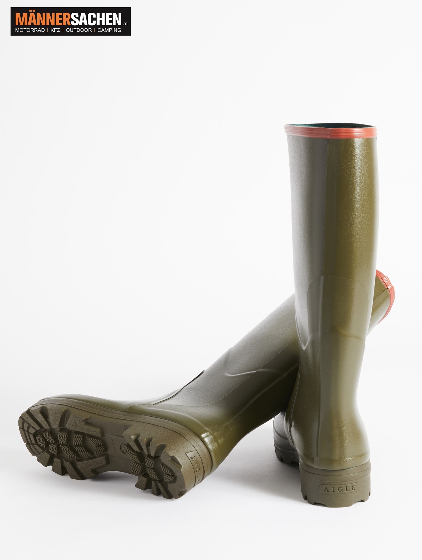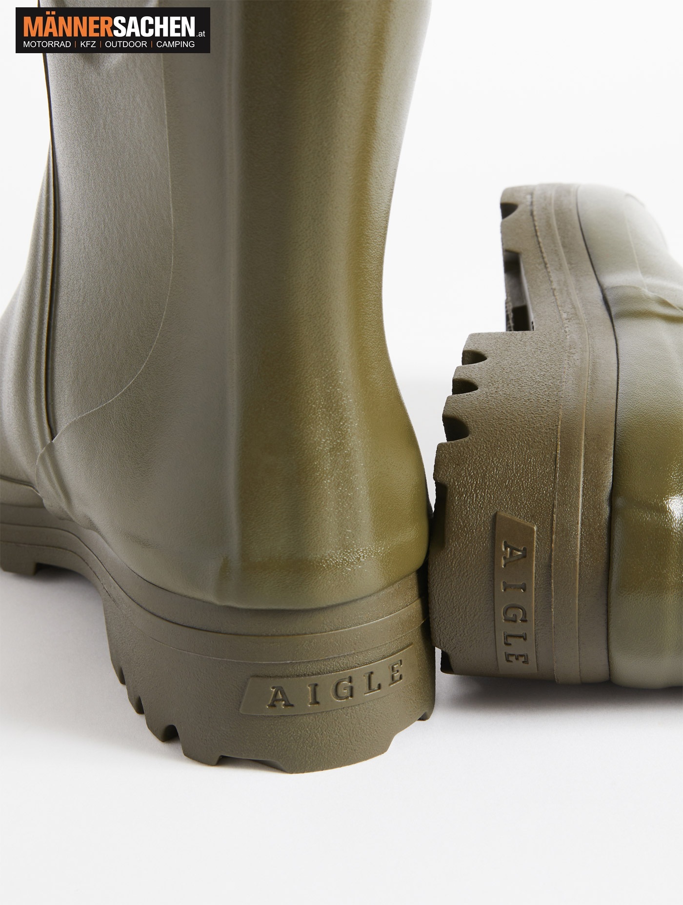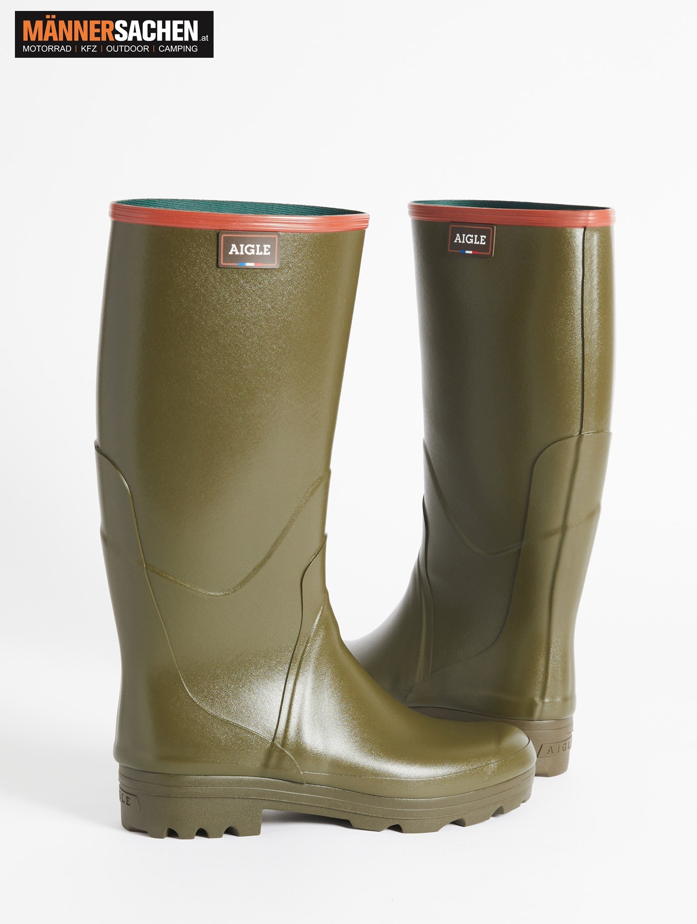 AIGLE PARCOURS Stiefel für intensiven Gebrauch Modell: PARCOURS 2 Vari Stiefel erhältliche Farben: Brun, Kaki, Bronze • STARK HAFTEND • ANTI-ERMÜDUNG • HERGESTELLT AUS NATURKAUTSCHUK    Mit ihrer dreidimensionalen Gummisohle und dem dämpfenden Kissen bietet der Parcours 2 Stiefel seit 2012 einen Komfort, der es ermöglicht, länger zu gehen, ohne müde zu werden. Der Fuß wird dank seiner an die Knöchel angepassten Form fest gehalten. Diese robusten Funktionsstiefel wurden für Fachleute und Landwirte entwickelt und eignen sich für den professionellen und langfristigen Einsatz. • Schnelltrocknendes Futter • Selbstreinigende Profilsohle • Grip und Haftung.   Zusammensetzung : Obermaterial: Überwiegender Naturkautschuk. Futter: 100% Polyester. Außensohle: Kautschuk. Vorteile : Selbstreinigendes Profil Das Design der Sohle spielt eine wichtige Rolle. Bei diesem Modell wurde es speziell entwickelt, um Erde und Kieselsteine beim Gehen auf natürliche Weise loszuwerden. Vollständige Undurchlässigkeit Der Stiefel besteht aus Naturkautschuk und garantiert eine vollständige Wasserundurchlässigkeit. Nicht ein Paar schlüpft uns durch die Maschen: Die Wasserundurchlässigkeit jedes hergestellten Stiefelpaares wird getestet ! Der Stiefel wird mit Luft gefüllt und dann ins Wasser getaucht. Wenn keine Blase erscheint, erfüllt er seine Funktionen und ist einsatzbereit. Breite Waden Der Stiefel wurde mit einer großzügigeren Form entworfen, damit er sich auch breiteren Waden bei maximalem Komfort anpassen kann.  Die technischen Vorteile dieses Produkts STARK HAFTEND Die Mischung der Sohle ist auf optimalen Grip und erhöhte Langlebigkeit der Sohle ausgelegt: Ideal für rutschige Oberflächen und weiche Böden. ANTI-ERMÜDUNG Diese Sohle mit dreifacher Dichte garantiert maximalen Komfort. Sie verfügt über einen Gummieinsatz mit progressiver Dämpfung, eine stabilisierende Zwischensohle und eine 360°-Grip-Sohle, die von einer Gamspfote inspiriert ist. Das Bein ermüdet nicht so schnell, und wer dieses Modell trägt, kann lange laufen, ohne das Gewicht der Kilometer zu spüren.  Bei weiteren Fragen stehen wir Ihnen gerne telefonisch oder per Mail zur Verfügung. 0676 - 9119990  office@maennersachen.at