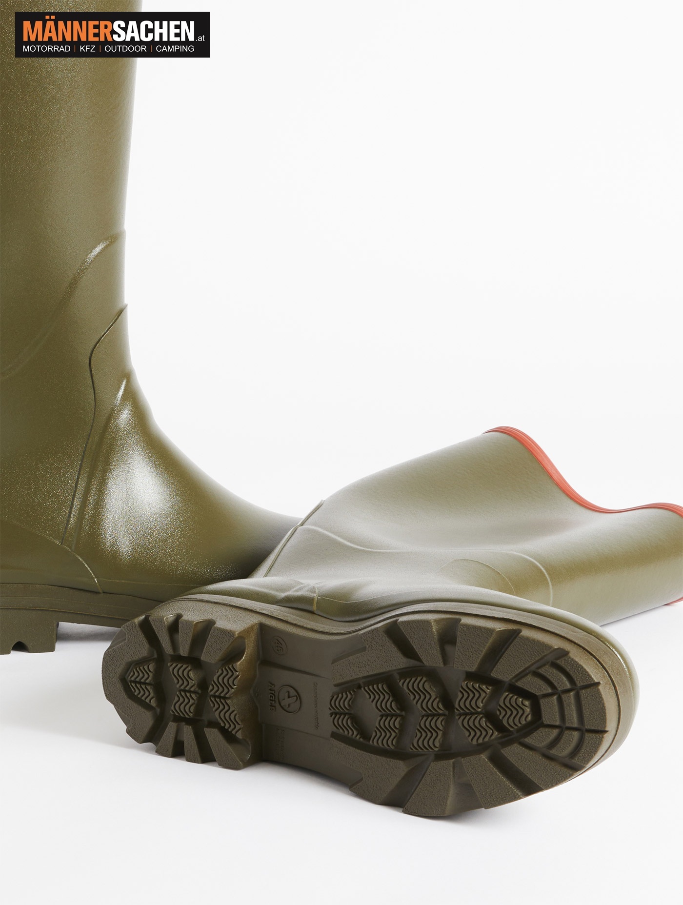 Der Stiefel besteht aus Naturkautschuk und garantiert eine vollständige Wasserundurchlässigkeit.