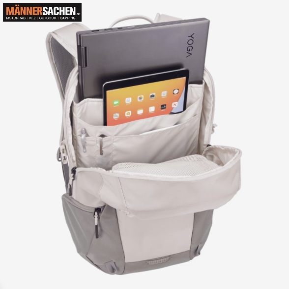 THULE EnRoute Rucksack  Volumen: 30 Liter Ein sportlicher Mehrzweck-Rucksack für Freizeit und Alltag. Hält Laptop und Arbeitsutensilien von persönlichen Gegenständen getrennt. Eigenschaften: • Abgesetzte, dedizierte Fächer schützen Laptops bis 16-Zoll und Tablets bis zu 10,5-Zoll • Erhöhte Taschen schützen einen 16-Zoll-Laptop und ein 10,5-Zoll-Tablet, während Kleinteile, Stifte und Schlüssel im speziellen Organizer-System leicht zugänglich aufbewahrt sind • Separate Fächer zur Aufbewahrung von Elektronik, Arbeitsutensilien und persönlichen Gegenständen • Trenne schmutzige Gegenstände oder Schuhe in einer Tasche, die von außen zugänglich ist und bei Nichtgebrauch verstaut werden kann • Starre SafeZone-Tasche schützt ein Telefon, eine Sonnenbrille oder andere sensible Wertsachen • Die schützende TPU-Innentasche mit Reißverschluss ist blickdicht und wasserabweisend • Der Rucksack lässt sich vollständig öffnen, um beide Seiten leicht zu bepacken und verfügt über ein großes Staufach mit einer Netzplatte, die mit einem Reißverschluss geschlossen wird, um Gegenstände an ihrem Platz zu halten • Seitliche Netztaschen an der Außenseite bieten Platz für eine Wasserflasche, ein Netzteil oder einen Regenschirm • Mit der Trolleybefestigung können Sie den Rucksack am Trolley aufsetzen, um einfacher zu reisen • Brustgurt, gepolstertes Rückenteil mit Belüftungskanal und seitliche Kompressionsriemen zum Ausgleich der Last, was den Tragekomfort erhöht • Hergestellt aus bluesign®-zertifiziertem 400D-Nylon mit YKK-Reißverschlüssen   Technische Daten Maße: 29 x 23.5 x 47.5 cm Abmessungen des Laptop-Fachs: 26.5 x 3.1 x 38.5 cm Gewicht: 1.2 kg Volumen: 30 L Materialien: Bluesign®-geprüft, 100 % 400Dx400D-Nylon-Oxford einfarbig   Wir sind autorisierter THULE Fachhändler. Bei weiteren Fragen stehen wir Ihnen gerne telefonisch oder per Mail zur Verfügung. 0676 - 9119990  office@maennersachen.at