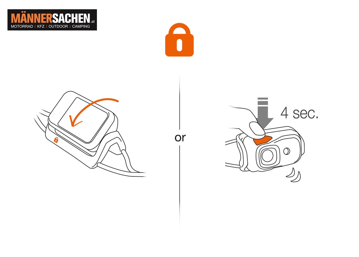 Zwei LOCK-Funktionen verhindern ein unbeabsichtigtes Einschalten während des Transports und bei Nichtbenutzung der Lampe.