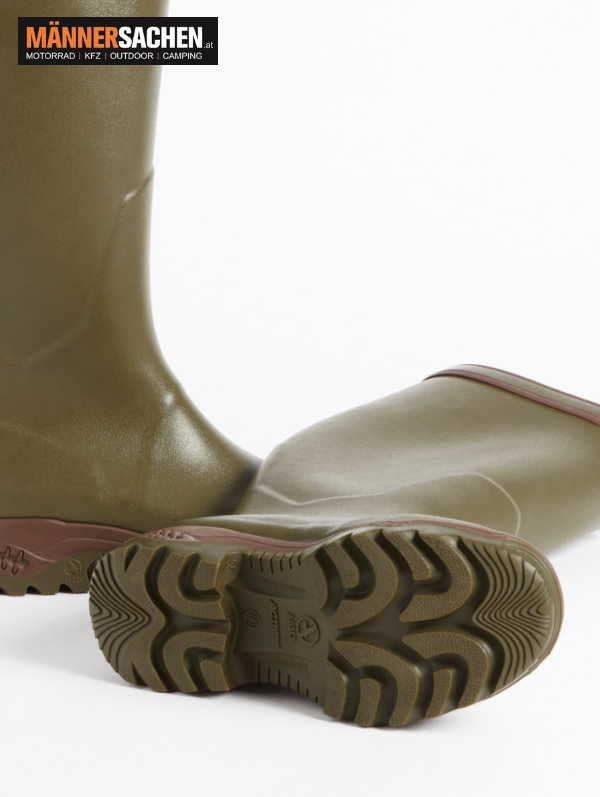 Modell: CHAMBORD PRO 2  erhältliche Farben: Ambre, Kaki • STARK HAFTEND • HERGESTELLT AUS NATURKAUTSCHUK    Für die Arbeit entworfen, ist dieser Stiefel bequem und strapazierfähig. Seine Sohle ermöglicht optimalen Halt auf allen Untergründen. Diese Stiefel sind für Fachleute bestimmt und eignen sich für den regelmäßigen Gebrauch, insbesondere im Wald. Schnelltrocknendes Futter • Selbstreinigende Außensohle mit Profil • Grip und Dämpfung.   Obermaterial: Überwiegender Naturkautschuk. Futter: 100% Polyamid. Außensohle: Kautschuk.   Vorteile Selbstreinigendes Profil Das Design der Sohle spielt eine wichtige Rolle. Bei diesem Modell wurde es speziell entwickelt, um Erde und Kieselsteine beim Gehen auf natürliche Weise loszuwerden. Vollständige Undurchlässigkeit Der Stiefel besteht aus Naturkautschuk und garantiert eine vollständige Wasserundurchlässigkeit. Nicht ein Paar schlüpft uns durch die Maschen: Die Wasserundurchlässigkeit jedes hergestellten Stiefelpaares wird getestet! Der Stiefel wird mit Luft gefüllt und dann ins Wasser getaucht. Wenn keine Blase erscheint, erfüllt er seine Funktionen und ist einsatzbereit. Breite Waden Der Stiefel wurde mit einer großzügigeren Form entworfen, damit er sich auch breiteren Waden bei maximalem Komfort anpassen kann.   Die technischen Vorteile dieses Produkts STARK HAFTEND Die Mischung der Sohle ist auf optimalen Grip und erhöhte Langlebigkeit der Sohle ausgelegt: Ideal für rutschige Oberflächen und weiche Böden.   Bei weiteren Fragen stehen wir Ihnen gerne telefonisch oder per Mail zur Verfügung. 0676 - 9119990  office@maennersachen.at