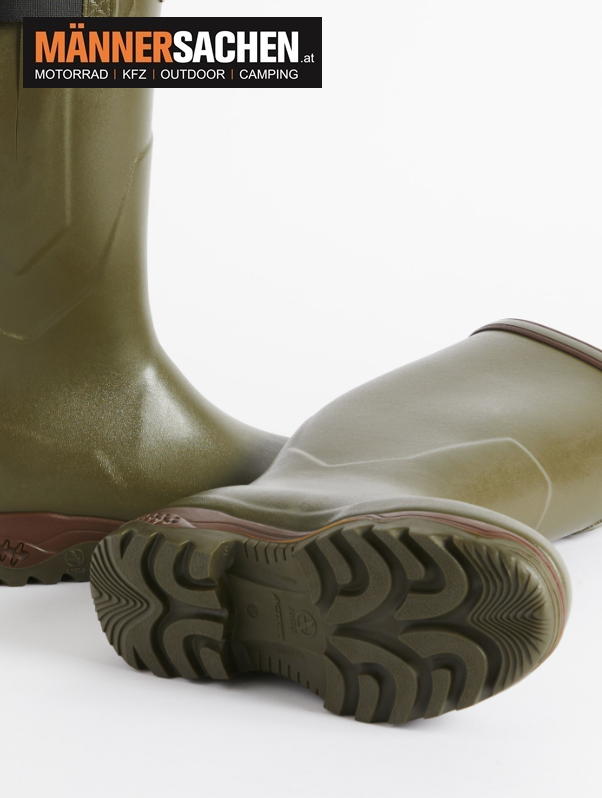 Der Stiefel besteht aus Naturkautschuk und garantiert eine vollständige Wasserundurchlässigkeit.