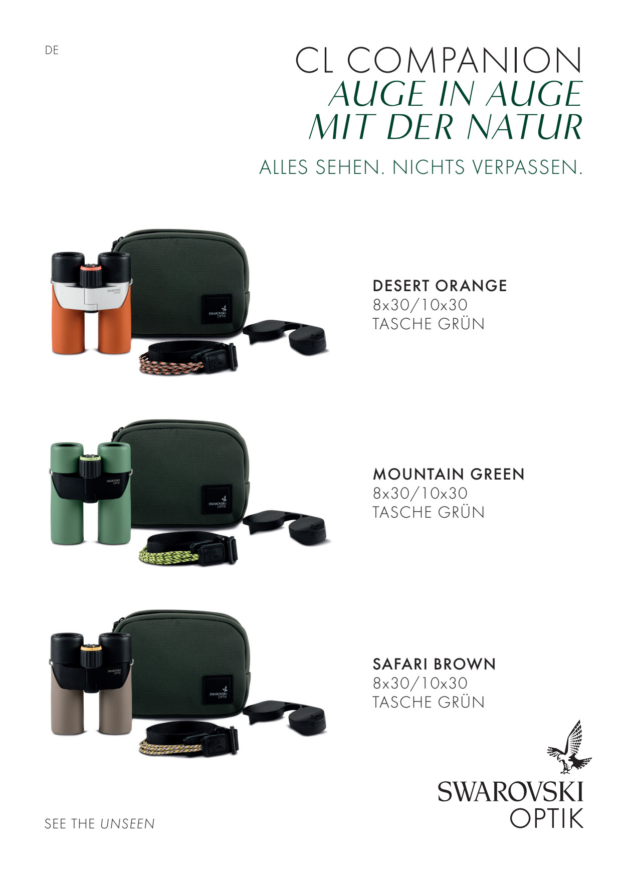 Das CL Companion 8x30 verbindet ein großes Sehfeld mit beeindruckender optischer Klarheit – für alle, die Natur in ihrer ganzen Weite erleben möchten.