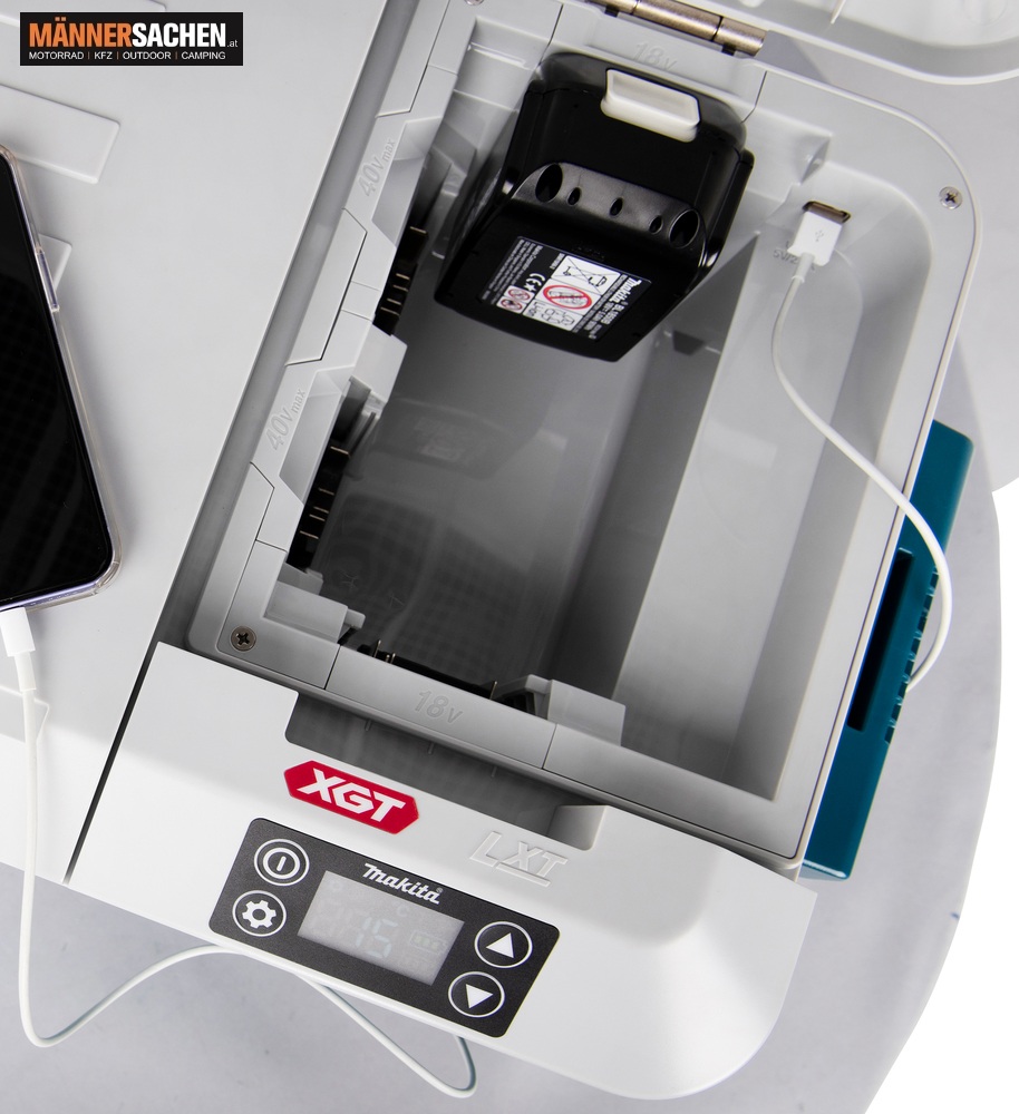 Die Kühl- und Wärmebox kann auch über den Zigarettenanzünder im Auto betrieben werden um Akkukapazität zu sparen.