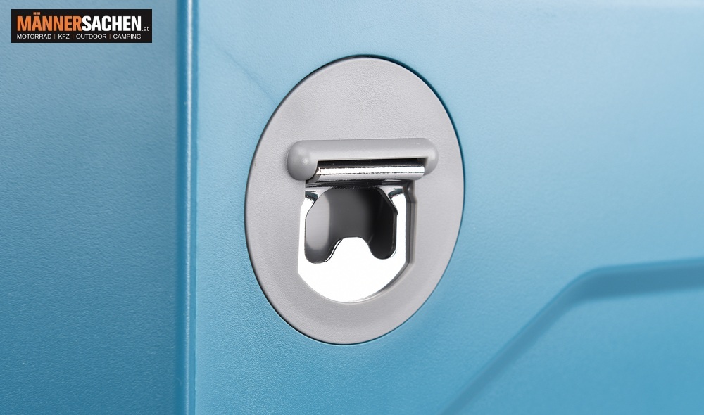 • Praktisch angebrachter Flaschenöffner zum Öffnen von Glasflaschen