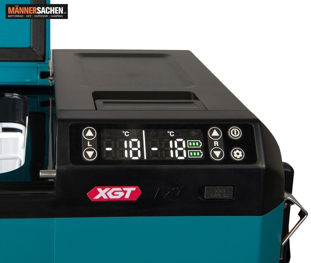 Das Modell CW004G ist eine 29 Liter Kühl- und Wärmebox welche über das KFZ und LKW Bordnetz, Makita 40V mav & 18V Akkus sowie über ein 230V Netzteil betrieben werden kann.