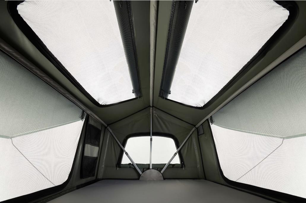 - Trotz der kompakten Reisegröße ist der Innenraum genauso geräumig wie bei einem herkömmlichen Dachzelt für 2 Personen