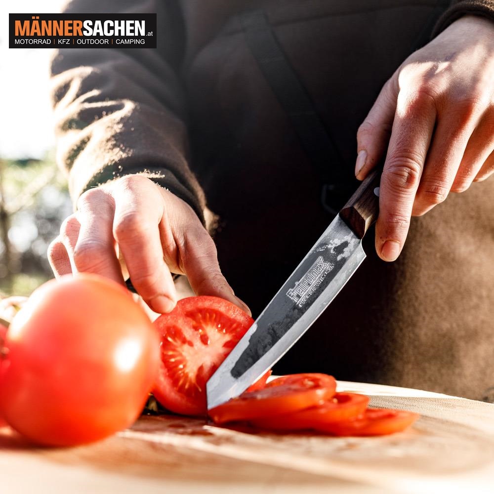 Das Petromax Allzweckmesser ist das in Handarbeit in der Klingenstadt Solingen hergestellte Kochmesser für die vielfältige Draußen-Küche.