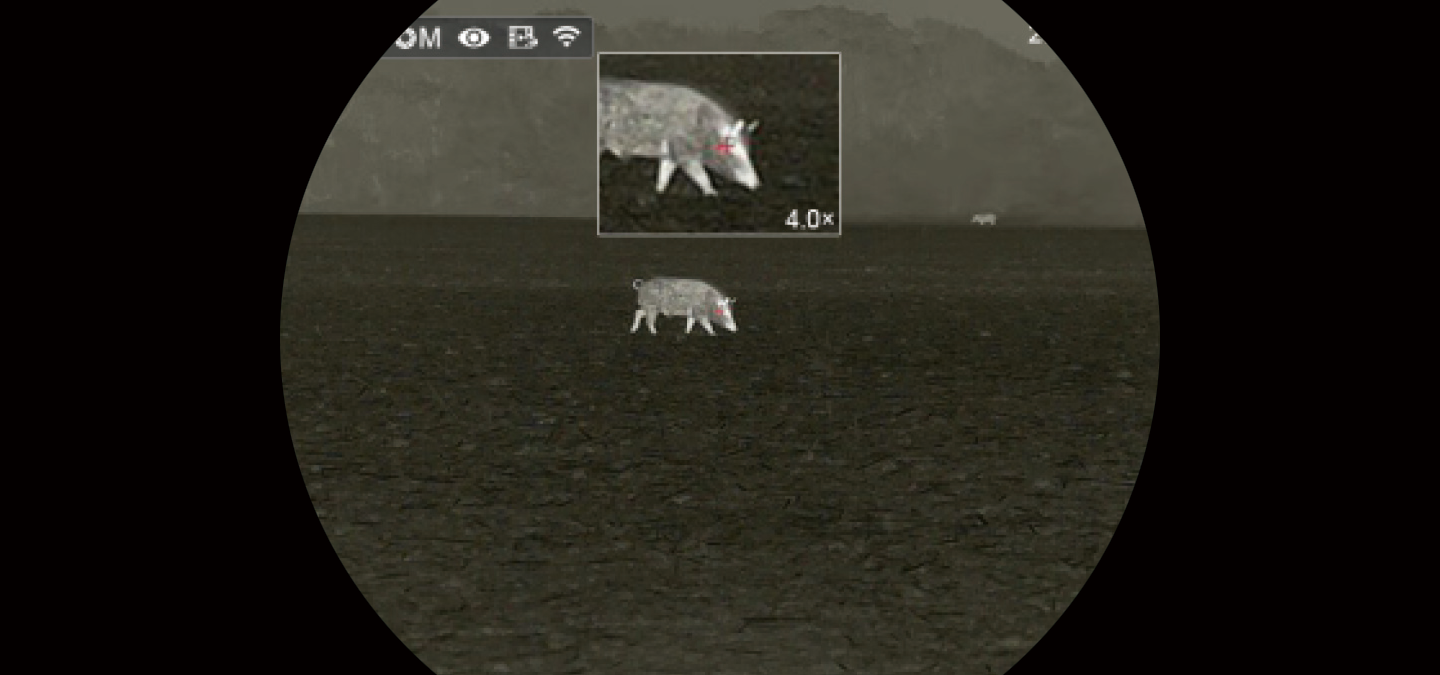 PIP : Der Bildschirm der Cursorposition wird zweifach vergrößert, um das Ziel hervorzuheben und beim Beobachten der Zieldetails zu helfen.