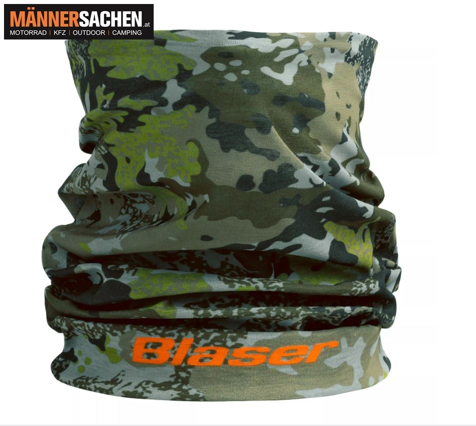 Die Farben dunkel oliv und HunTec Camo ziert ein Blaser Schriftzug; das Multi-Tube in Blaze Orange besticht durch einem Argali Print.