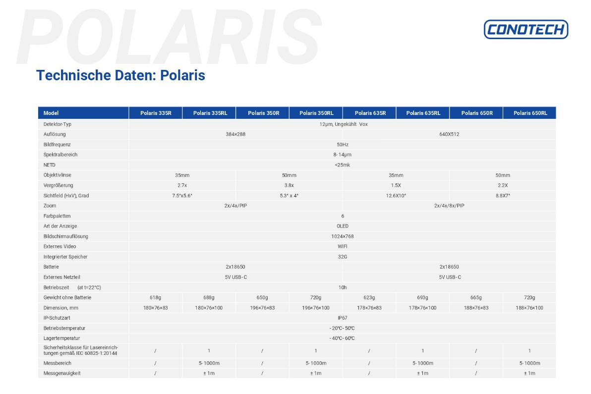 Ausgestattet mit einem hochempfindlichen Wärmebildsensor bietet das Polaris eine außergewöhnliche Detailerkennung, selbst in Umgebungen mit geringem Wärmekontrast wie Schnee, Staub, Rauch, Nebel und Dunst.
