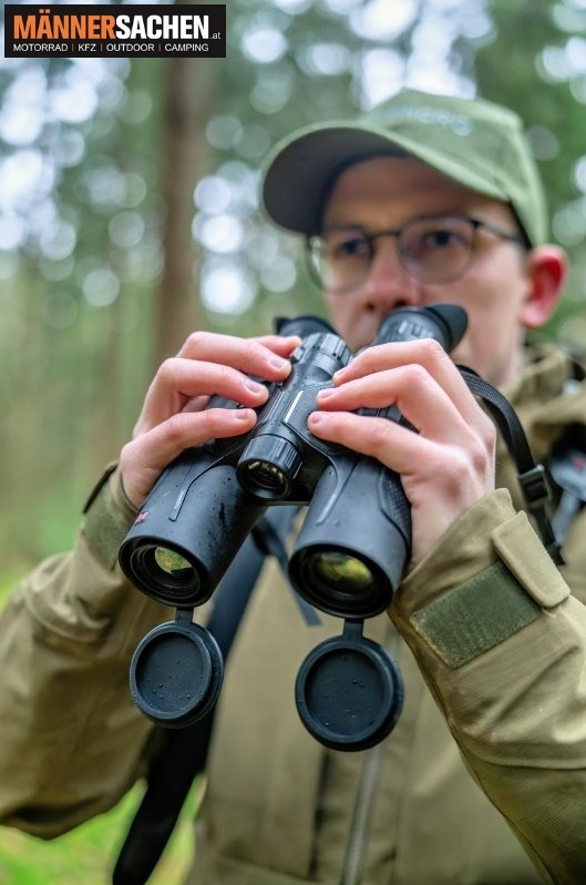 Ein Laser-Entfernungsmesser mit 1000 Metern Reichweite sowie ein austauschbarer IR-Strahler (940 nm & 850 nm) erweitern den Einsatzbereich bei Nacht erheblich.