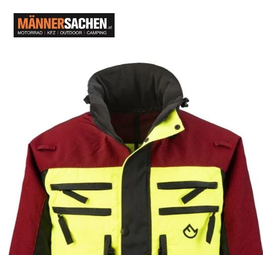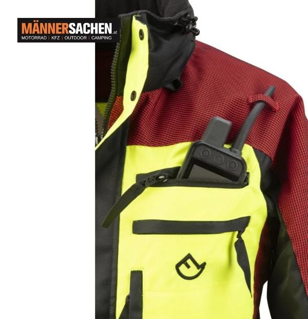 Mit insgesamt 11 funktionalen Taschen, darunter spezielle Fächer für GPS, Funkgeräte und Dokumente, bietet die Jacke maximale Praxistauglichkeit.