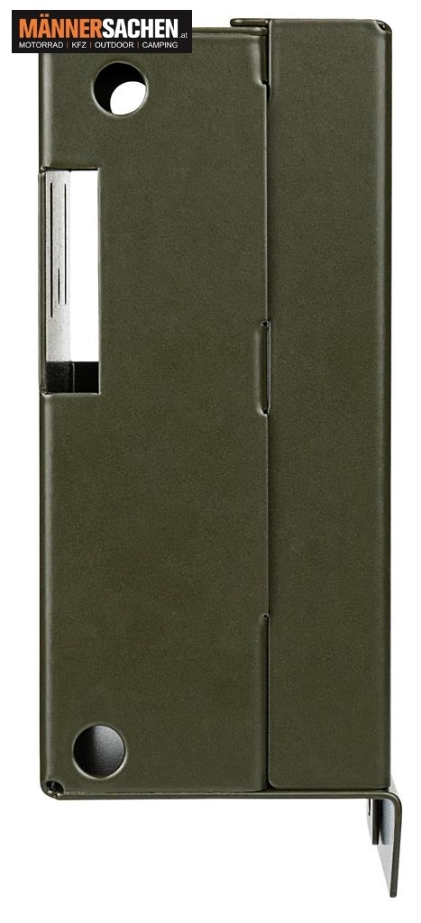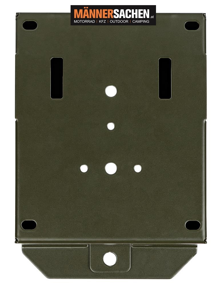 Eine Vielzahl von Öffnungen auf der Rückseite des Gehäuses bieten variable Befestigungsmöglichkeiten. Den besten Schutz vor Diebstahl erreichen Sie, wenn Sie das Gehäuse an einen Baum schrauben oder mit Schrauben und Dübeln an einer Wand befestigen.