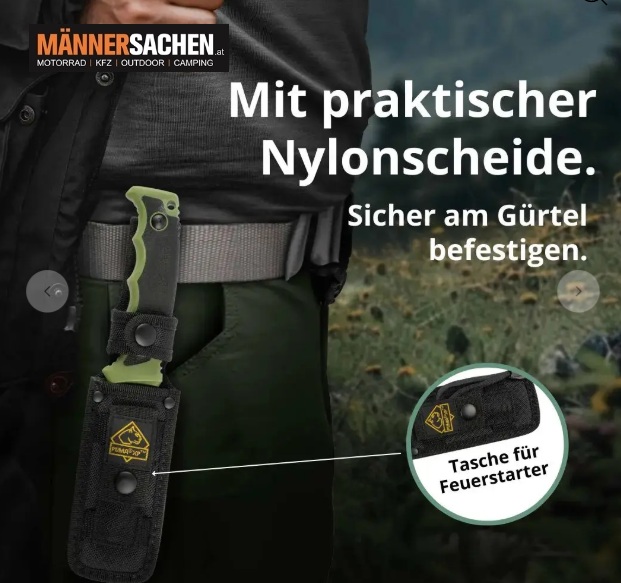 Lieferumfang: PUMA XP forever survival knife, Feuerstarter und Nylonscheide.