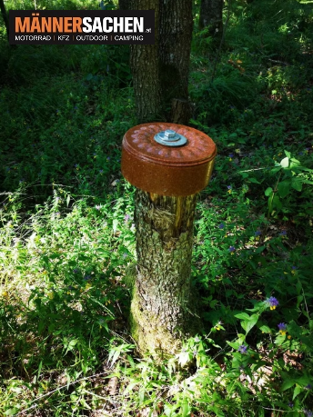 • Anbringung: an einem Baum: - mit 180er Schraube + M20 Unterlegscheibe / - mit einem Seil oder Kette / auf einem Baumstuggen: - mit einer Eisenstange / auf einen Pfahl mit Bedachung (empfohlen !)
