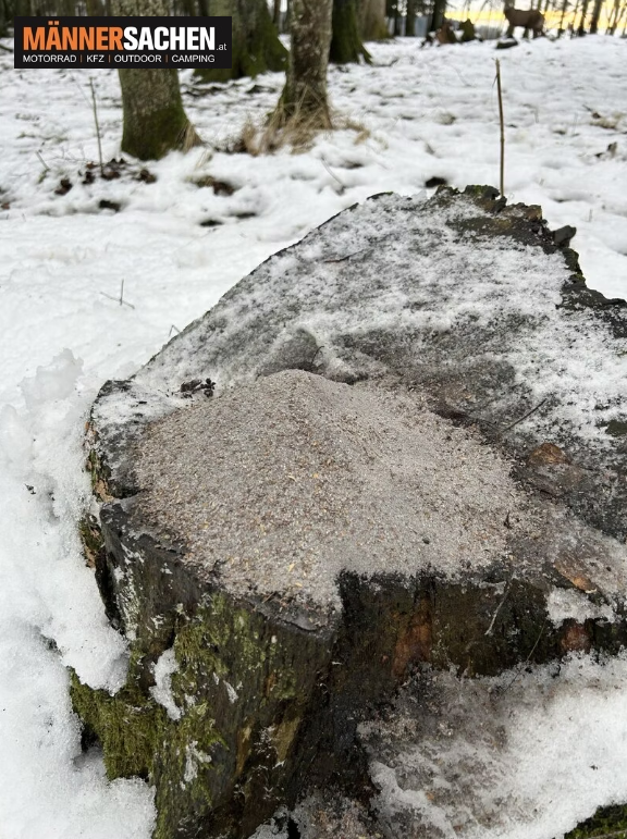 Wildlutscher Lock Salz kann schnell und einfach mit Kirrgut (z.B. Mais, Getreide) kombiniert oder einfach auf den Kirrplatz gestreut werden.