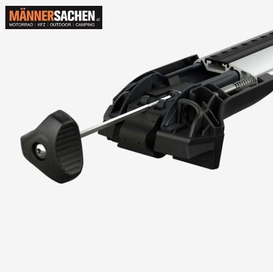 - Wird mit Thule One-Key Verriegelungen (im Lieferumfang enthalten) am Fahrzeug befestigt