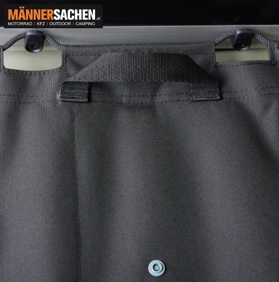 - Die Abdeckung mit Reißverschluss lässt sich aufrollen und fixieren