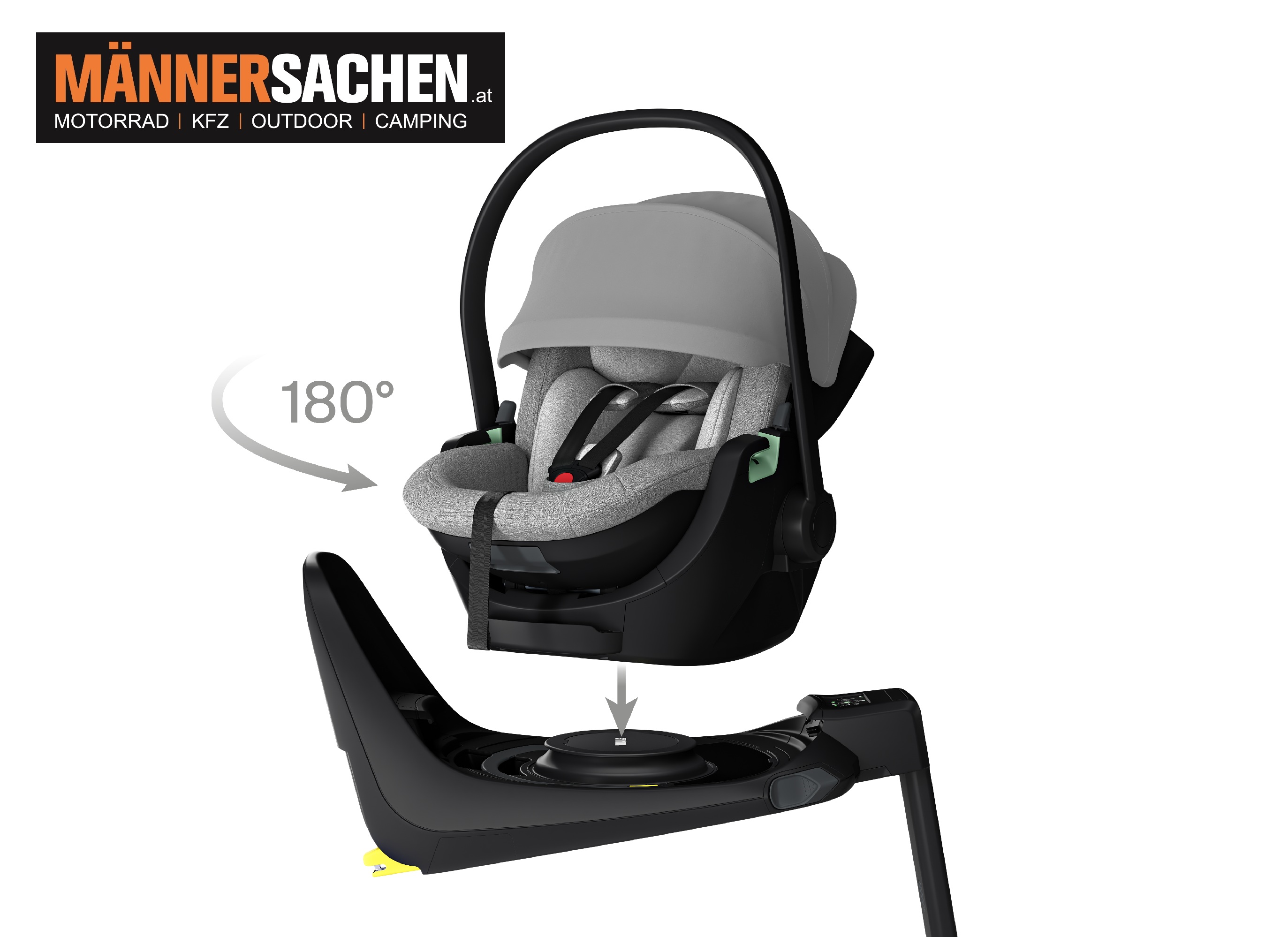 Einfach den Sitz auf die Basis setzen, in den Fahrmodus entgegen der Fahrtrichtung drehen und schon sind Sie bereit.