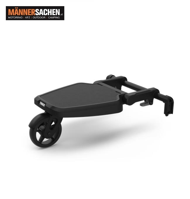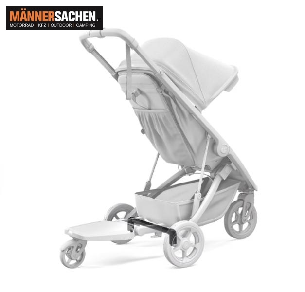 Mit dem Thule Rider Board kann ein älteres Kind einfach auf den Kinderwagen aufspringen und mitfahren – ein praktisches Trittbrett für alle, die lange Spaziergänge mit den Kindern lieben.