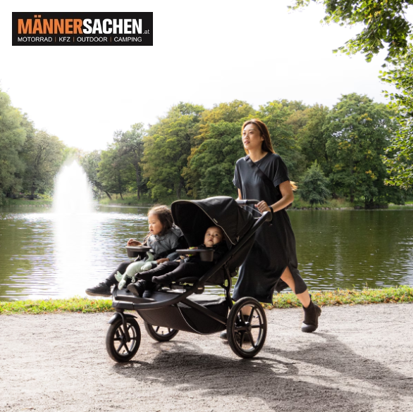 Hochwertige Federung und Luftbereifung ermöglichen Eltern wie Kindern auf jedem Terrain sanftes Vorankommen