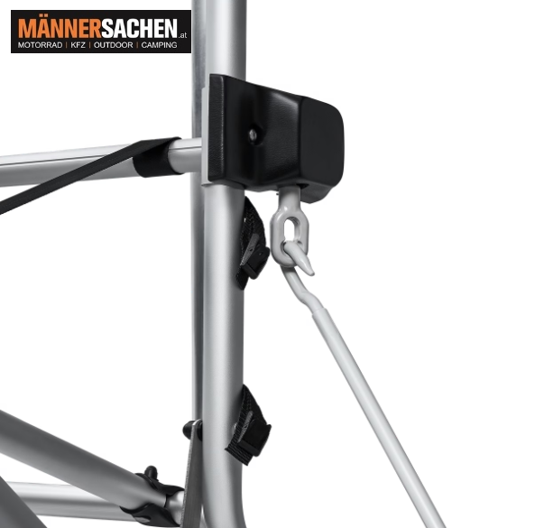 • Einfache Befestigung der Fahrräder durch abnehmbare Fahrradhaltearme mit abschließbaren Thule AcuTight Drehmomentbegrenzer-Knöpfen, die klicken, wenn das optimale Drehmoment erreicht ist. Damit können die Fahrräder abgeschlossen werden, das Risiko eines Diebstahls ist verringert, stellt aber keine Garantie gegen den Diebstahl der Fahrräder dar