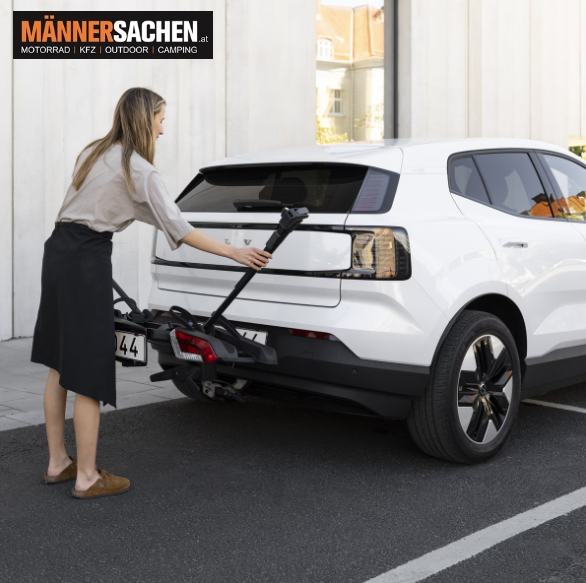 Neigt sich beim Parken in Richtung des Fahrzeugs und ist somit ideal für den Stadtverkehr. Hinweis: Der Fahrradträger darf sich während des Fahrens nicht in aufrechter Position befinden; diese Funktion ist nur zum Parken von Fahrrädern