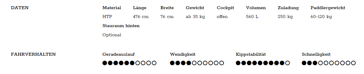 Mit einer Länge von 470 cm und ausreichend Kielsprung verfügt er über die nötige Wendigkeit, um auch engere Gewässer gut meistern zu können.