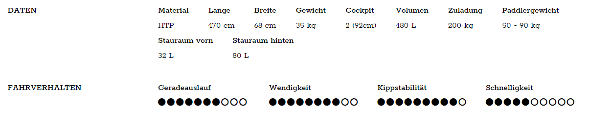 Der Dayliner Duo ist ein leicht laufender, kompakter Zweisitzer aus bewährten druckgeblasenen HTP und eine sinnvolle Ergänzung unseres Angebotes an Zweisitzern für kleinere Wanderfahrten und Tagestouren.
